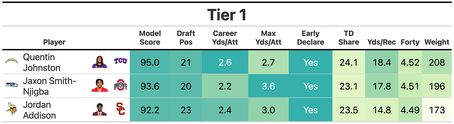 Post-NFL Draft 2023 Wide Receiver Prospect Model