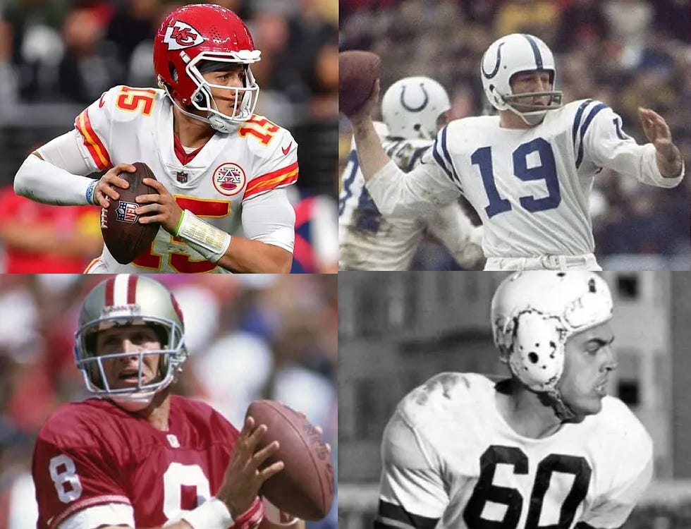 Unitas wasn’t just an efficiency quarterback, he was the focal point of the passing attack in an era that emphasized running the ball. Unitas led the NFL in pass attempts and passing yards four times, despite playing and strong teams that were often leading. When Unitas retired in 1973, he was the all-time passing leader with 40,239 yards (7K more than Y.A. Tittle) and 290 touchdowns (48 more than Tittle).
