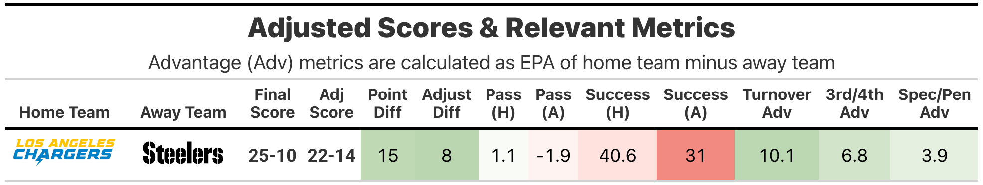 Week 10 Sunday Night Chargers-Steelers: Advanced Review
