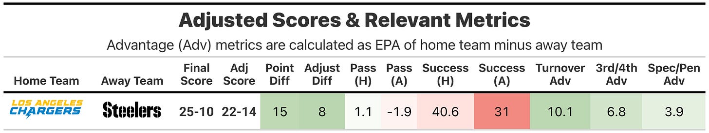 A mess of a game offensively for both teams, but the Los Angeles Chargers were simply bad on that side of the ball, not horrible like the Pittsburgh Steelers.