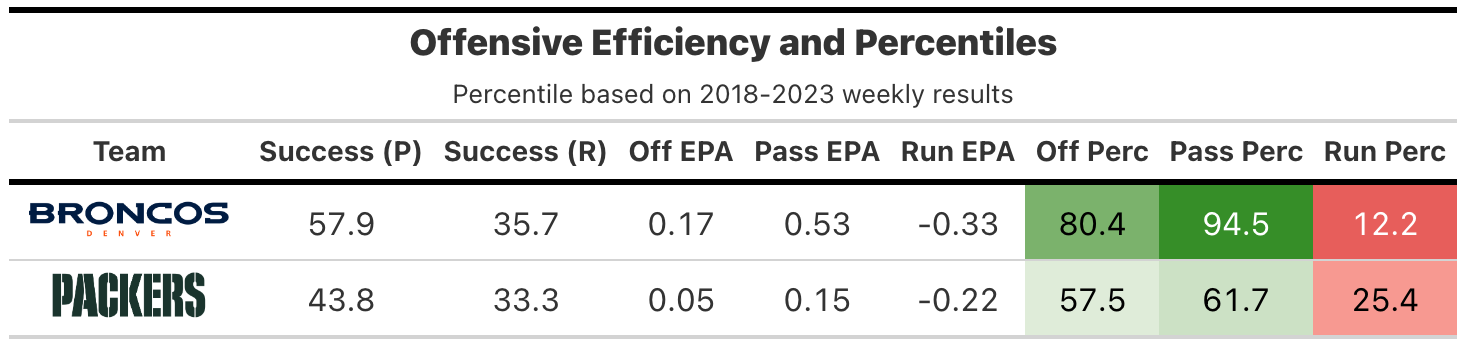 All the advanced stats, visualizations & commentary for Broncos-Packers, Rams-Lions, Panthers-Saints, Seahawks-Colts & 49ers-Titans