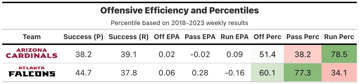 All the advanced stats, visualizations & commentary for Cardinals-Falcons, Broncos-Jaguars, Lions-Steelers & Texans-Raiders
