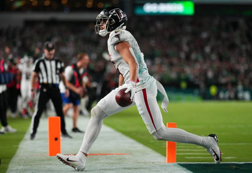 Even more hyped than the quarterback matchup going into the game was that between Bijan Robinson and Saquon Barkley, and both delivered with a couple major negative plays. You can’t necessarily blame Robinson for getting stuffed on 4th & 1 on the Falcons side of the field with 5:42 remaining, but it was the most negative play of the game for either team in expected points lost (-3.4). Outside of that run, Robinson was +3.5 EPA on 13 runs, plus flat EPA on six targets.