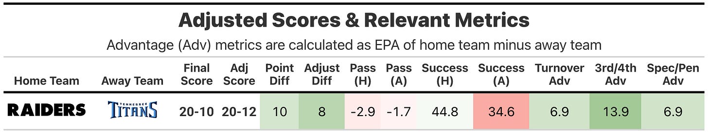 All the advanced stats, visualizations & commentary for Raiders-Titans, Packers-Bengals and Buccaneers-49ers