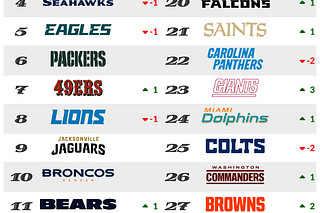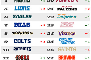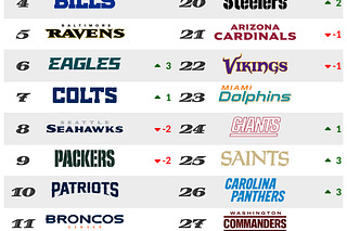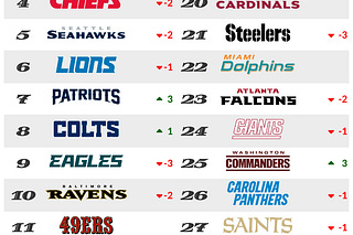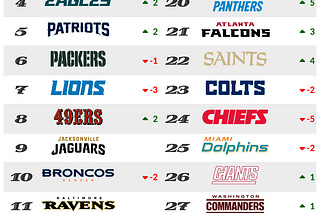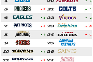 The Patriots are on the rise, with Week 18 starting quarterback chaos making the ranking mostly tentative