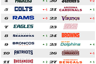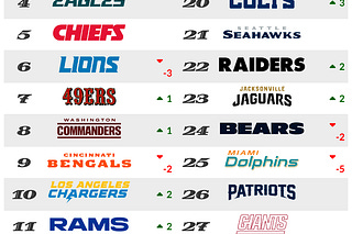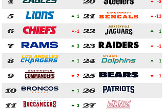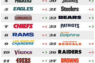 The rankings are solidifying near the top, with the Chiefs distancing a bit from the pack