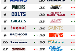 The Chiefs are on top, the Colts continue to rise, and I'm still (a little) low on the Eagles